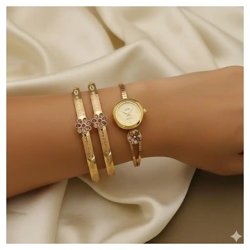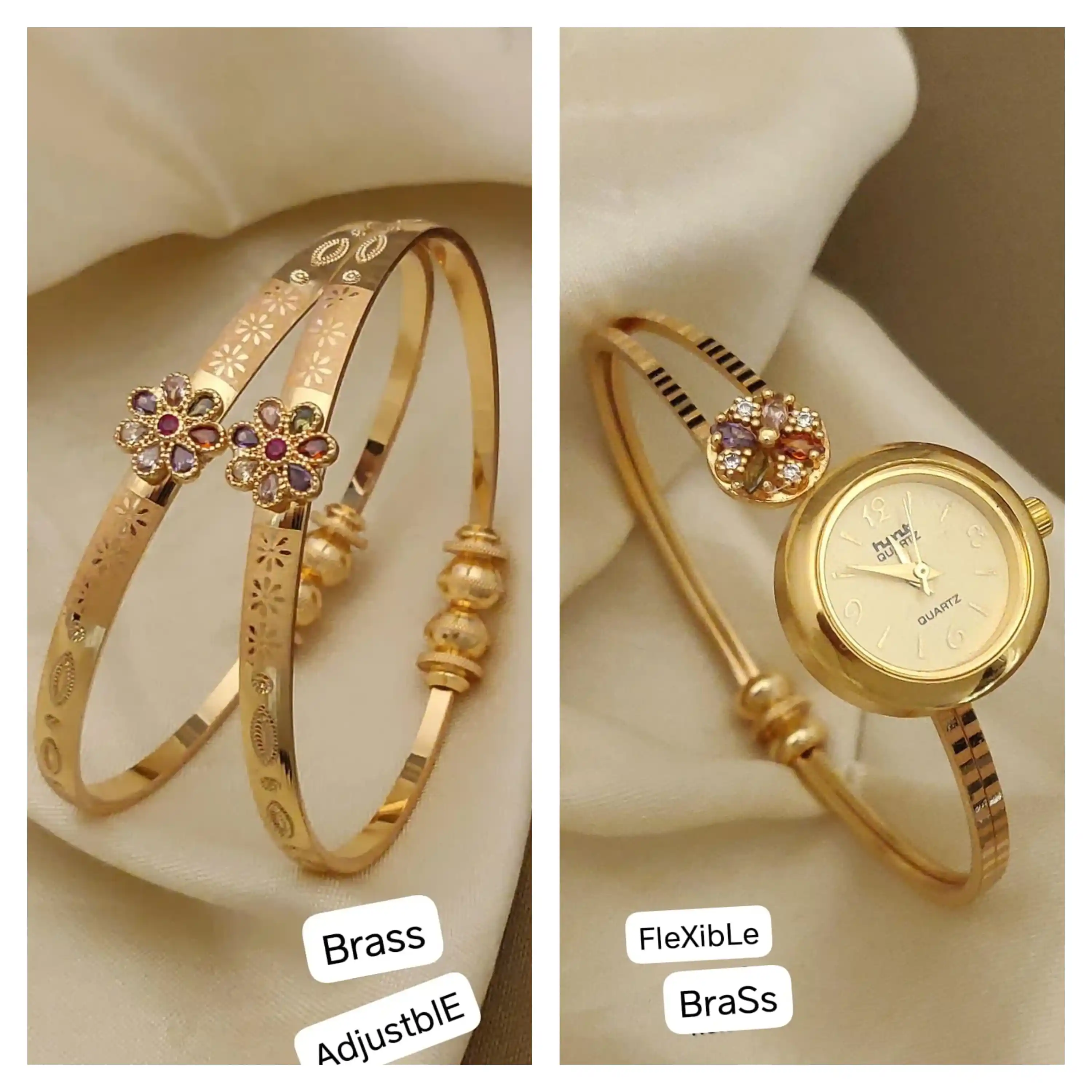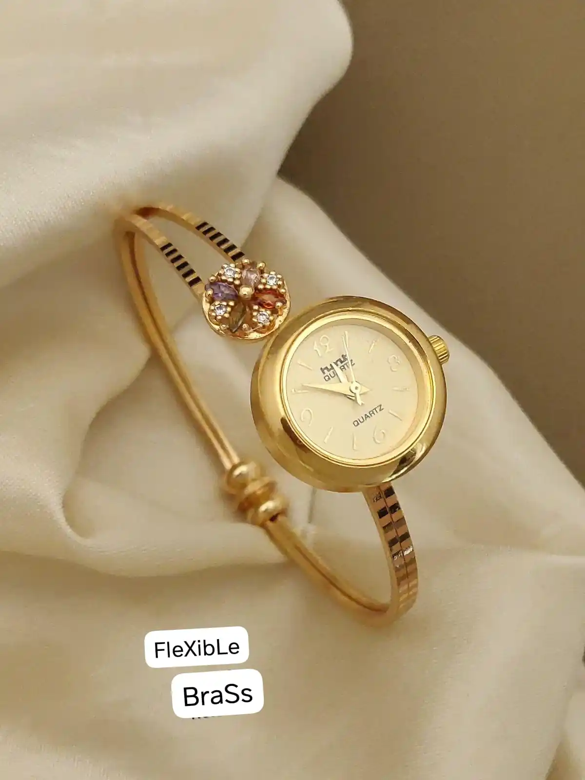 micro gold plated ad diamond studed fancy adjustable bangle with ajustable bracelet watch