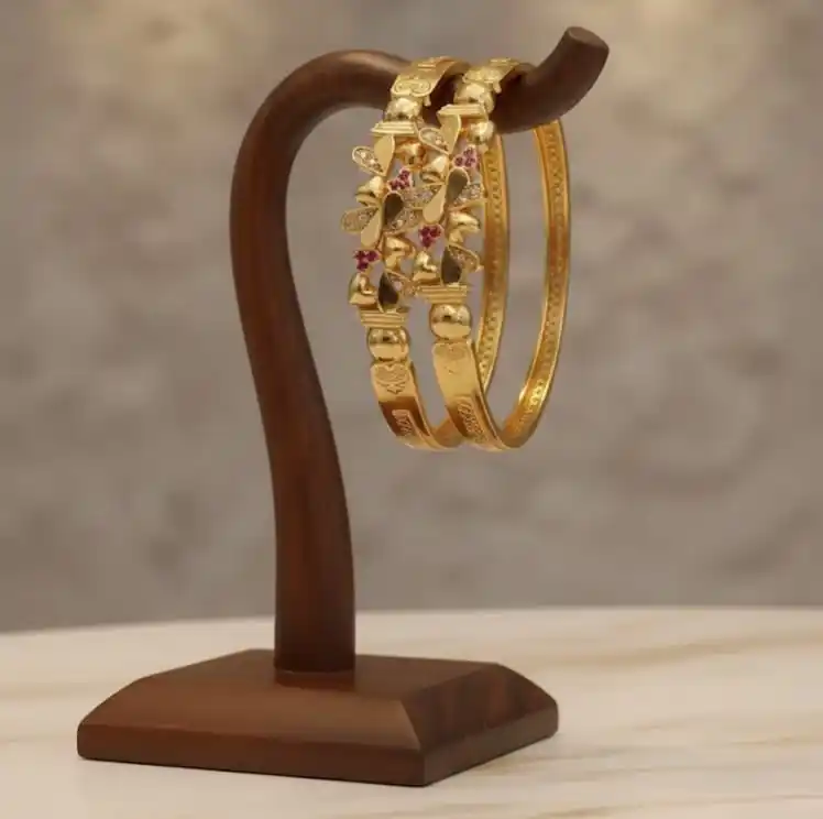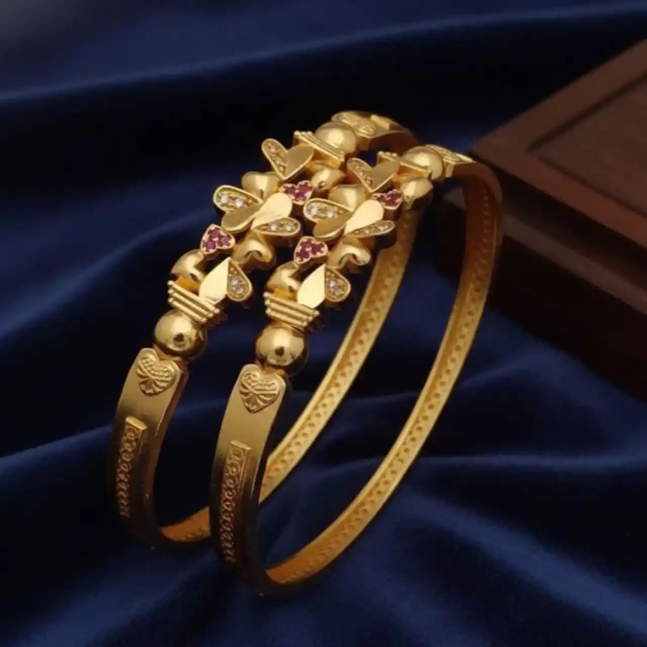 Micro gold plated daily wear ad diamond stufdded fancy heart shape 2 pcs bangle for women