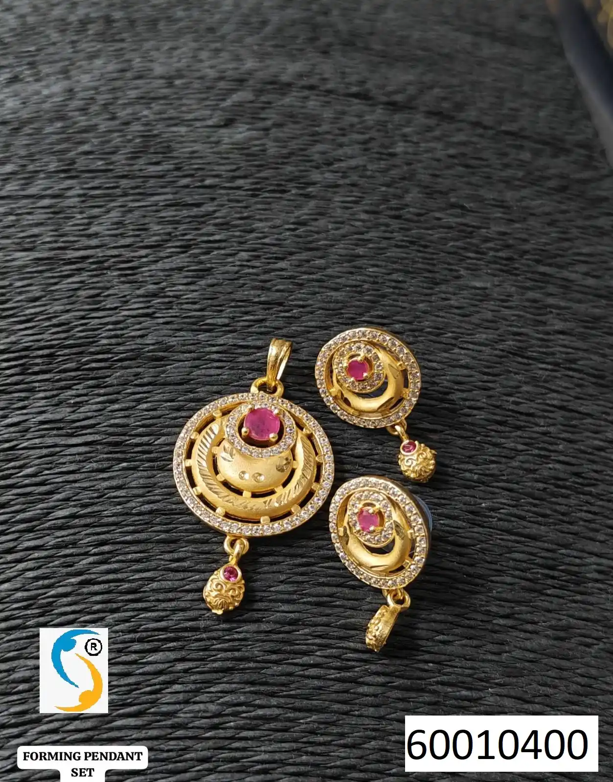 High Gold Plated Stunning American Diamond And Pink Diamond Studded Forming Designer Round Shape Pendent Set