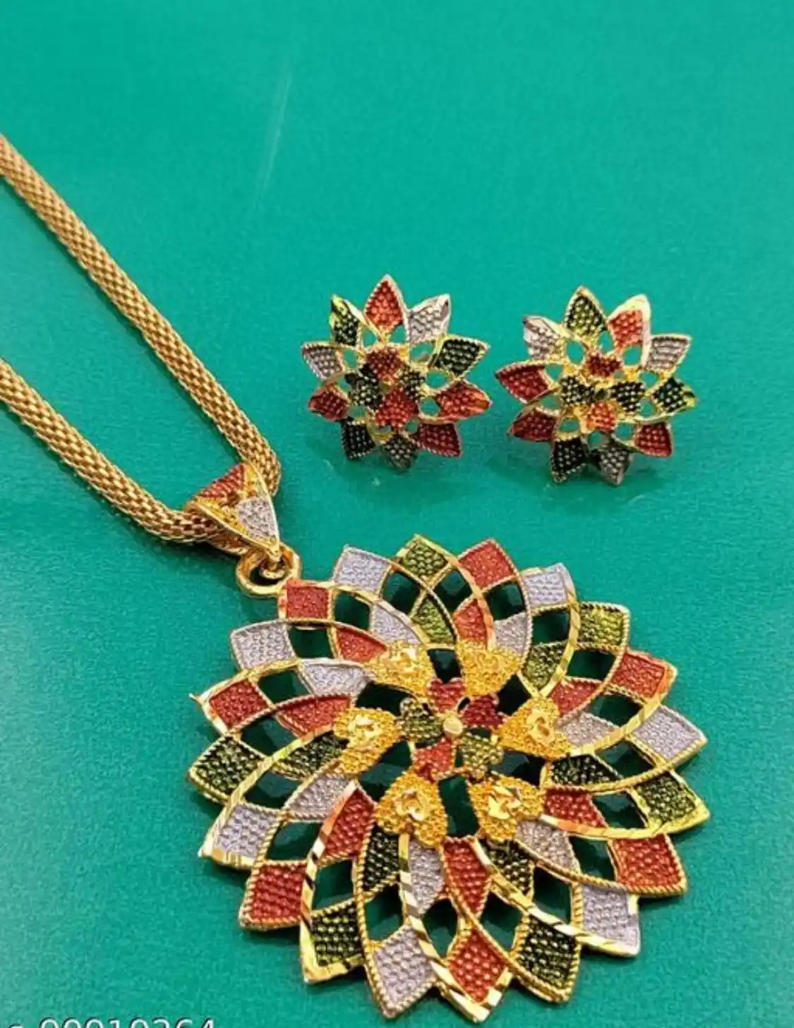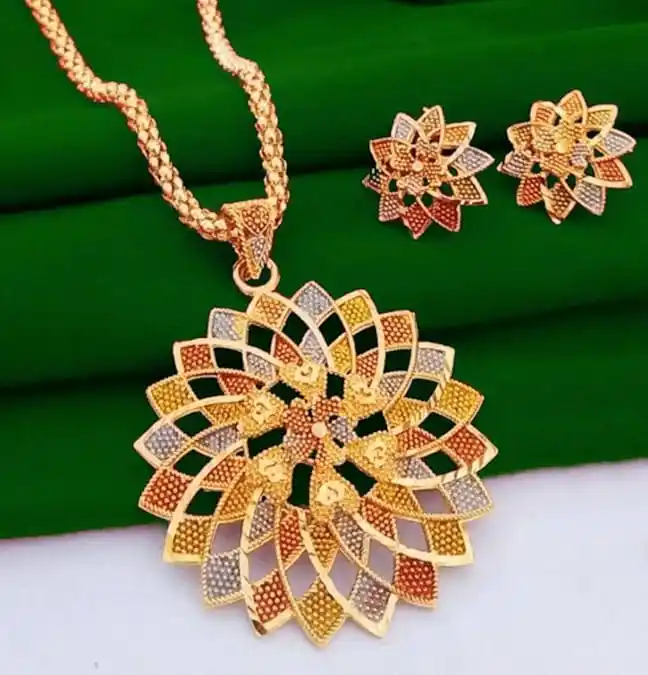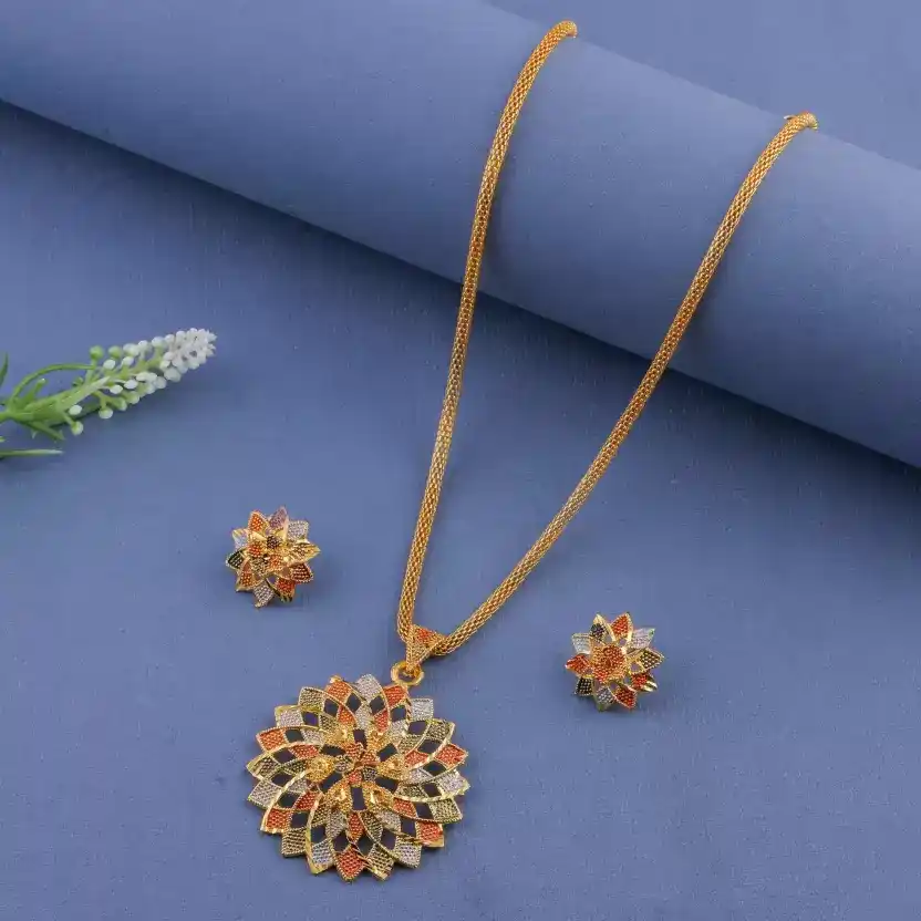 Multicoloured Designer High Gold Plated Pendent Chain With Beautiful Earrings
