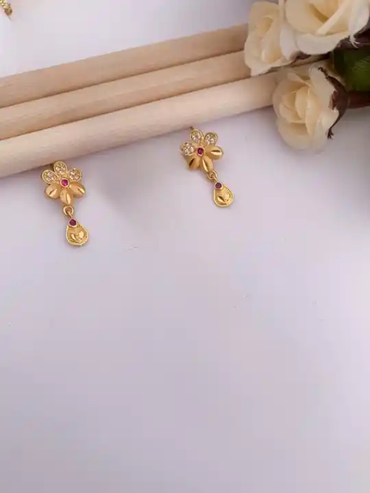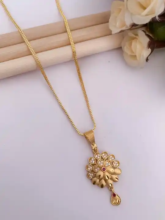 Micro Gold Plated AD Diamond Studded Fancy Flower Pendant Set with Chain